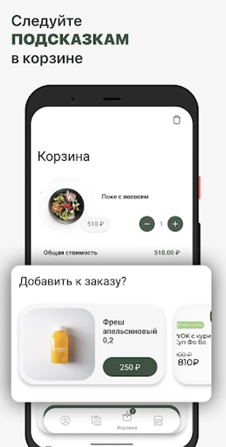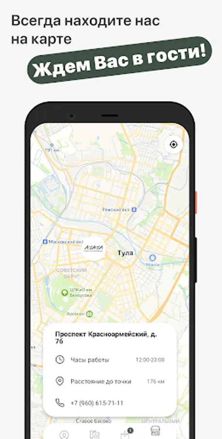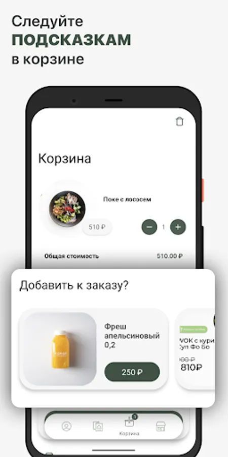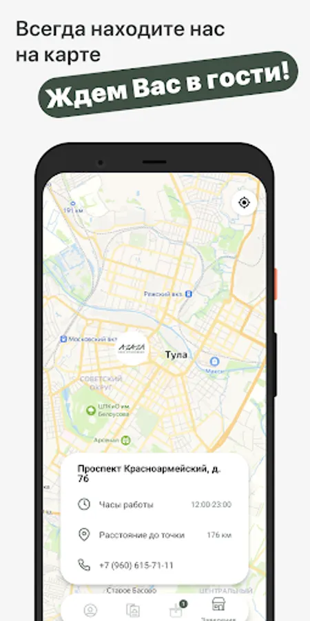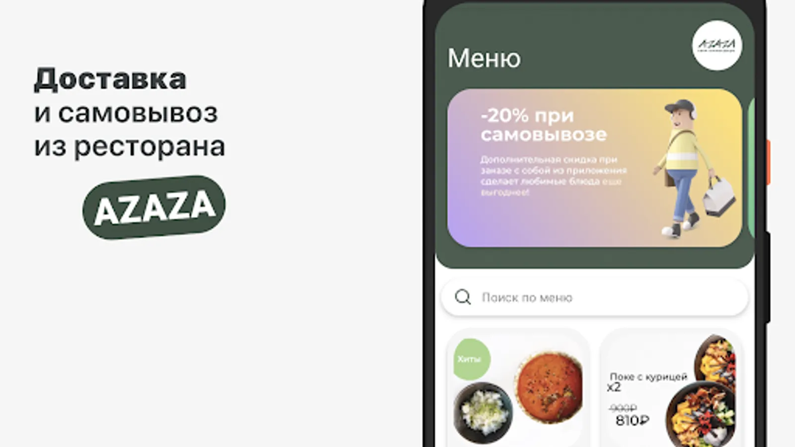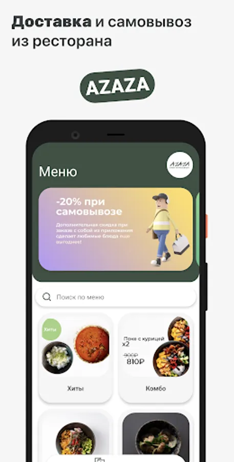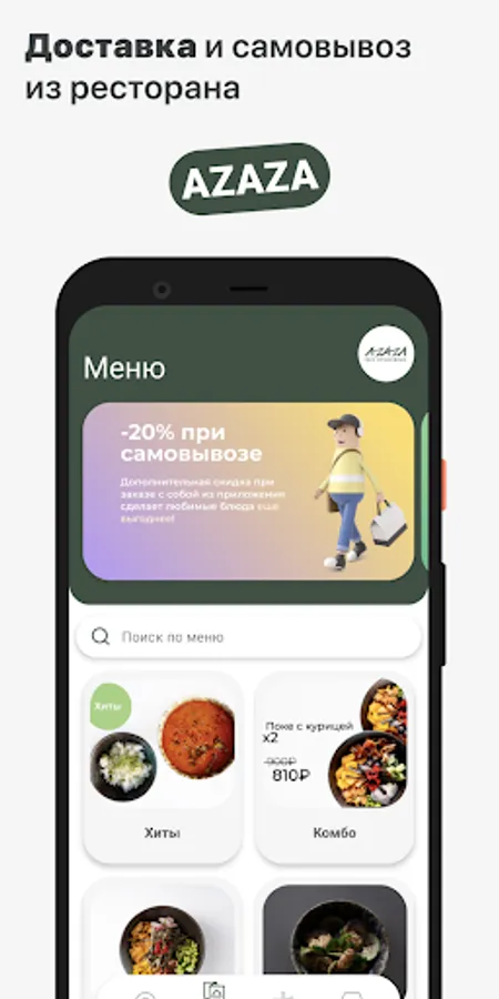 How to place an order in the “AZAZA” application: select the items you like from the menu, add them to the basket and go to the checkout screen (by clicking on the basket icon).