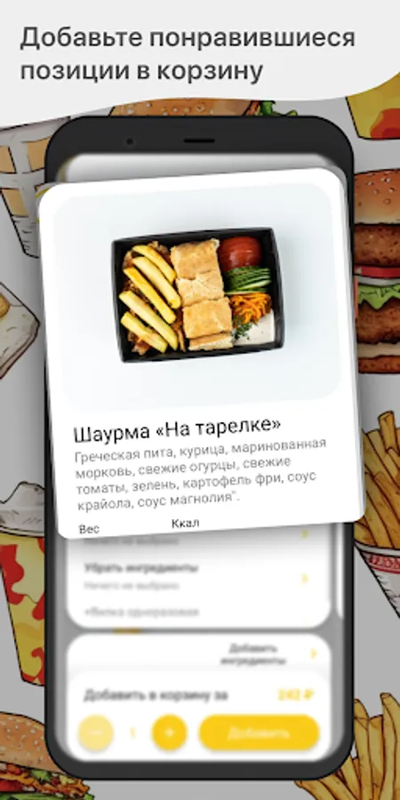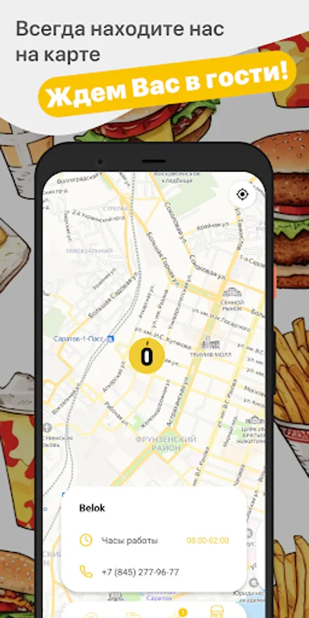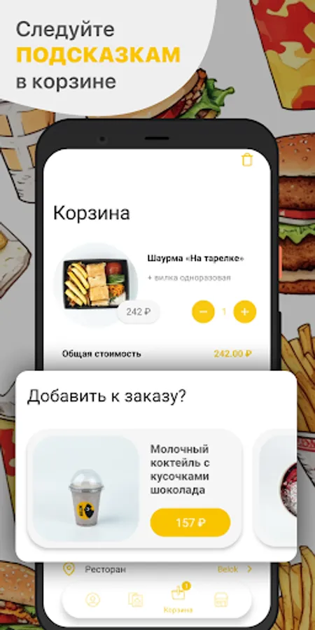 How to place an order in the “Belok” application: select the items you like from the menu, add them to the cart and go to the checkout screen (by clicking on the cart icon).