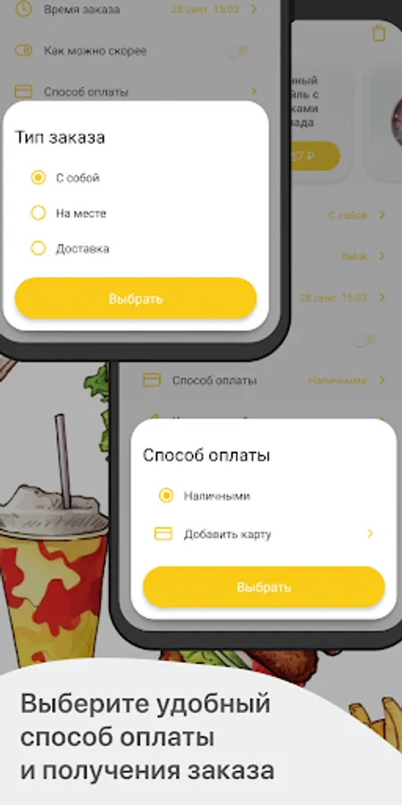 Specify the time when you want to come to pick up your order or select delivery with the time and delivery address.