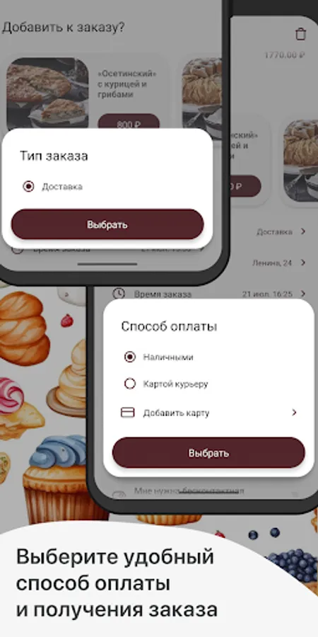 Specify the time when you want to come to pick up your order or select delivery with the time and delivery address.