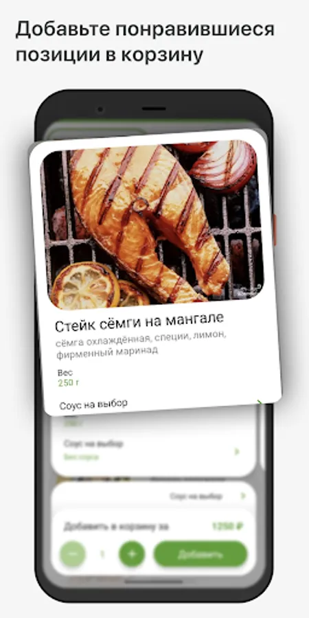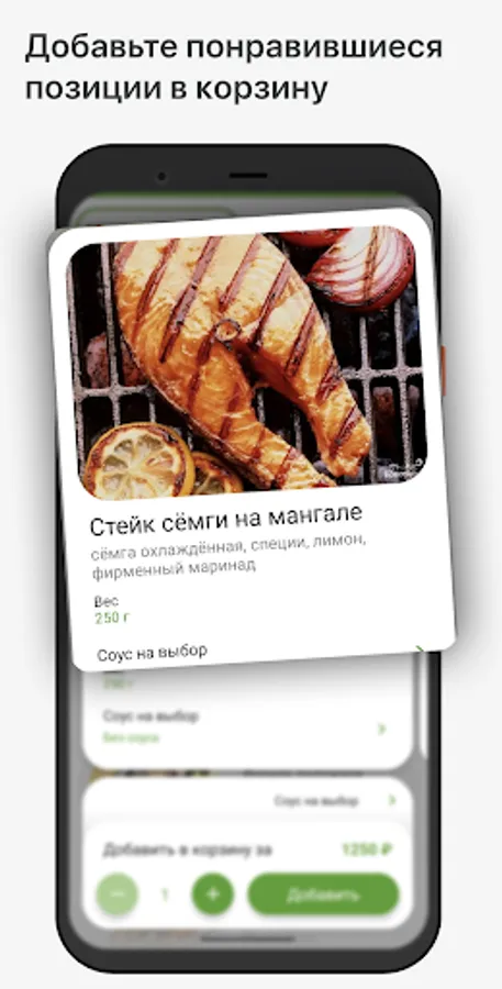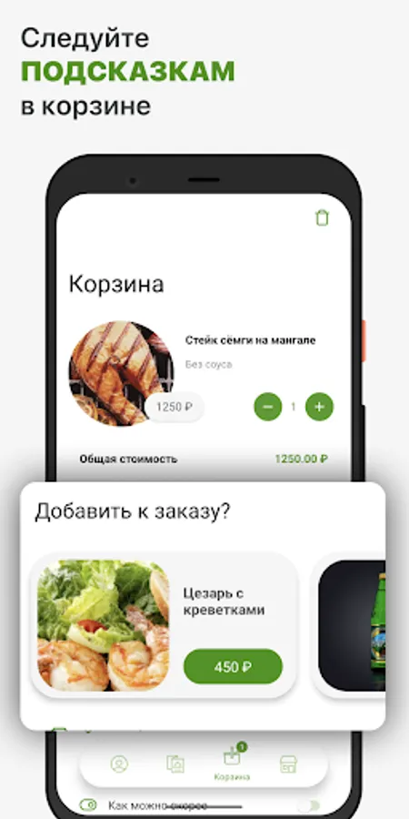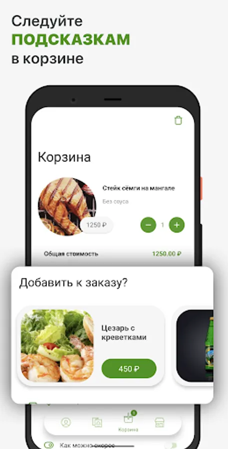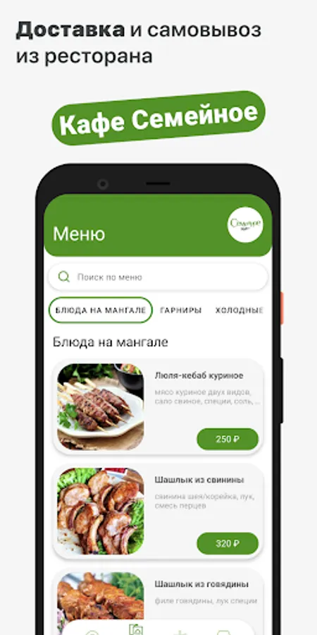 How to place an order in the “Family Cafe” application: select the items you like from the menu, add them to the basket and go to the checkout screen (by clicking on the basket icon).