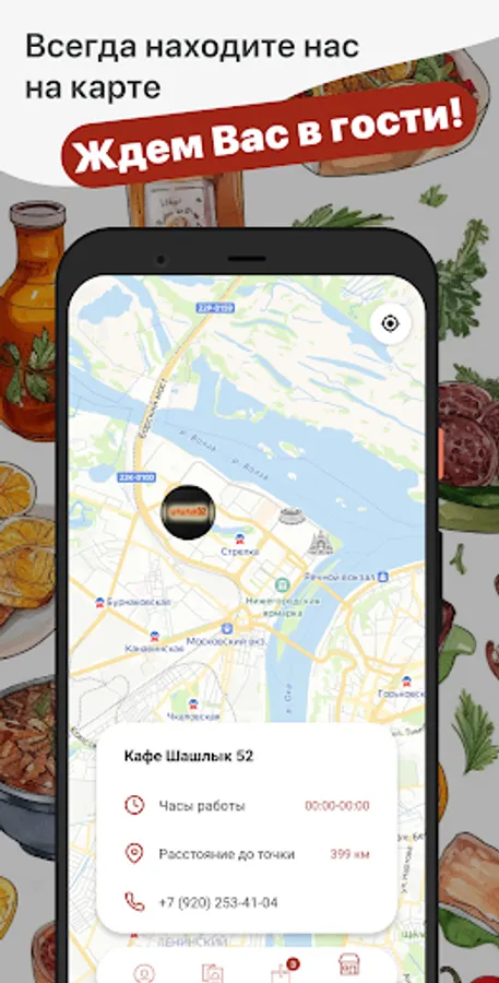 Our cafe, located on Meshchersky Boulevard, 10B, offers round-the-clock delivery of barbecue, prepared on the grill, and other dishes in Nizhny Novgorod. Free delivery within 1 hour - with an order amount of more than 600 rubles during the day and more than 800 rubles at night. Or come to our cozy cafe - we will be happy to deliciously feed you!