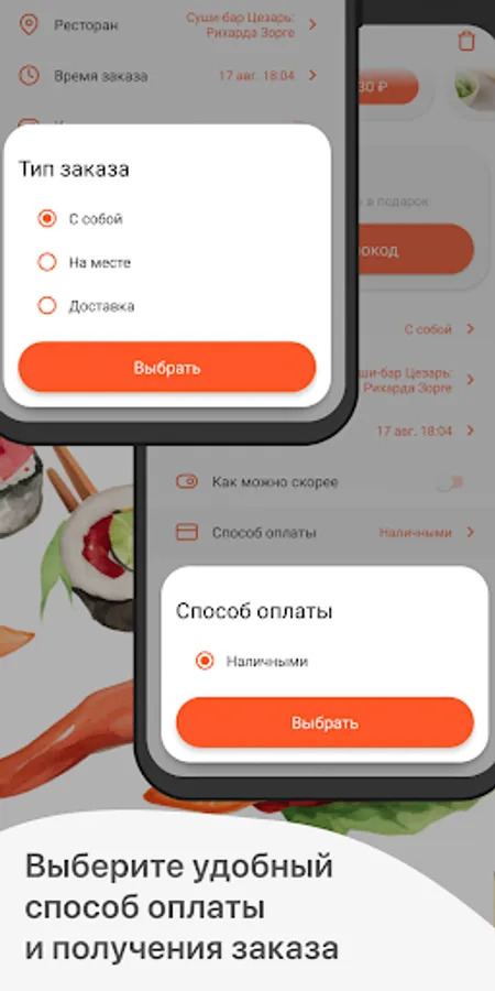 Choose a payment method: Cash or card. Accept the payment rules and click the “Order” button.