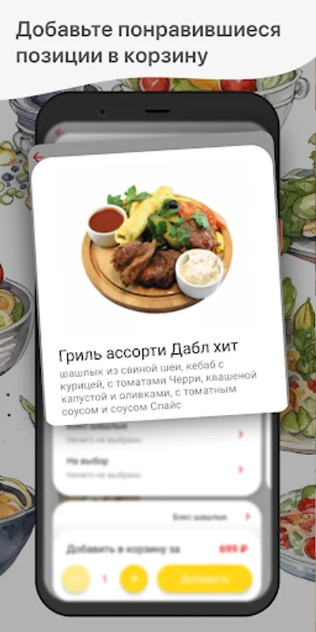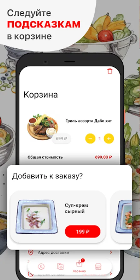 How to place an order in the City-Mix application: select the items you like from the menu, add them to the basket and go to the checkout screen (by clicking on the basket icon).