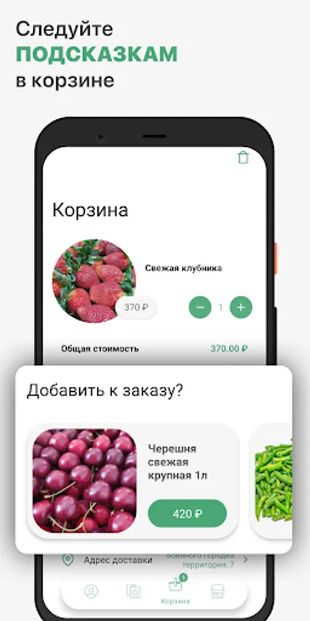 How to place an order in the “Gifts of Siberia” application: select the items you like from the menu, add them to the basket and go to the checkout screen (by clicking on the basket icon).