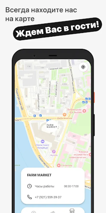A democratic self-service bistro in the Petrovsky Fort business center. The Farm Market is open from 8:30 in the morning, and you can stop by for breakfast: they serve cereals, cheesecakes, pancakes and omelettes. Business lunches are available from noon: a complex lunch will cost about 279 rubles. The menu changes regularly and is based on simple homemade dishes like baked chicken breast or beef noodles. And the interior is in a loft style: open brickwork, natural wood furniture, an abundance of greenery.