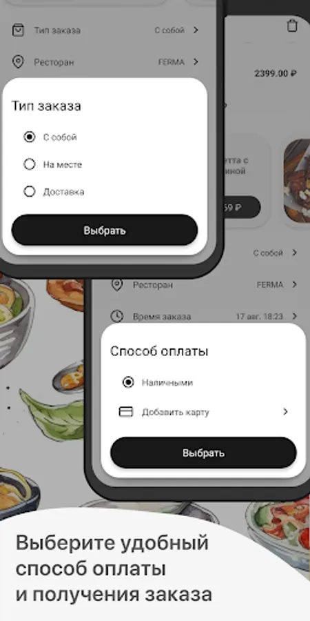 Choose a payment method: Cash or card. Accept the payment rules and click the “Order” button.