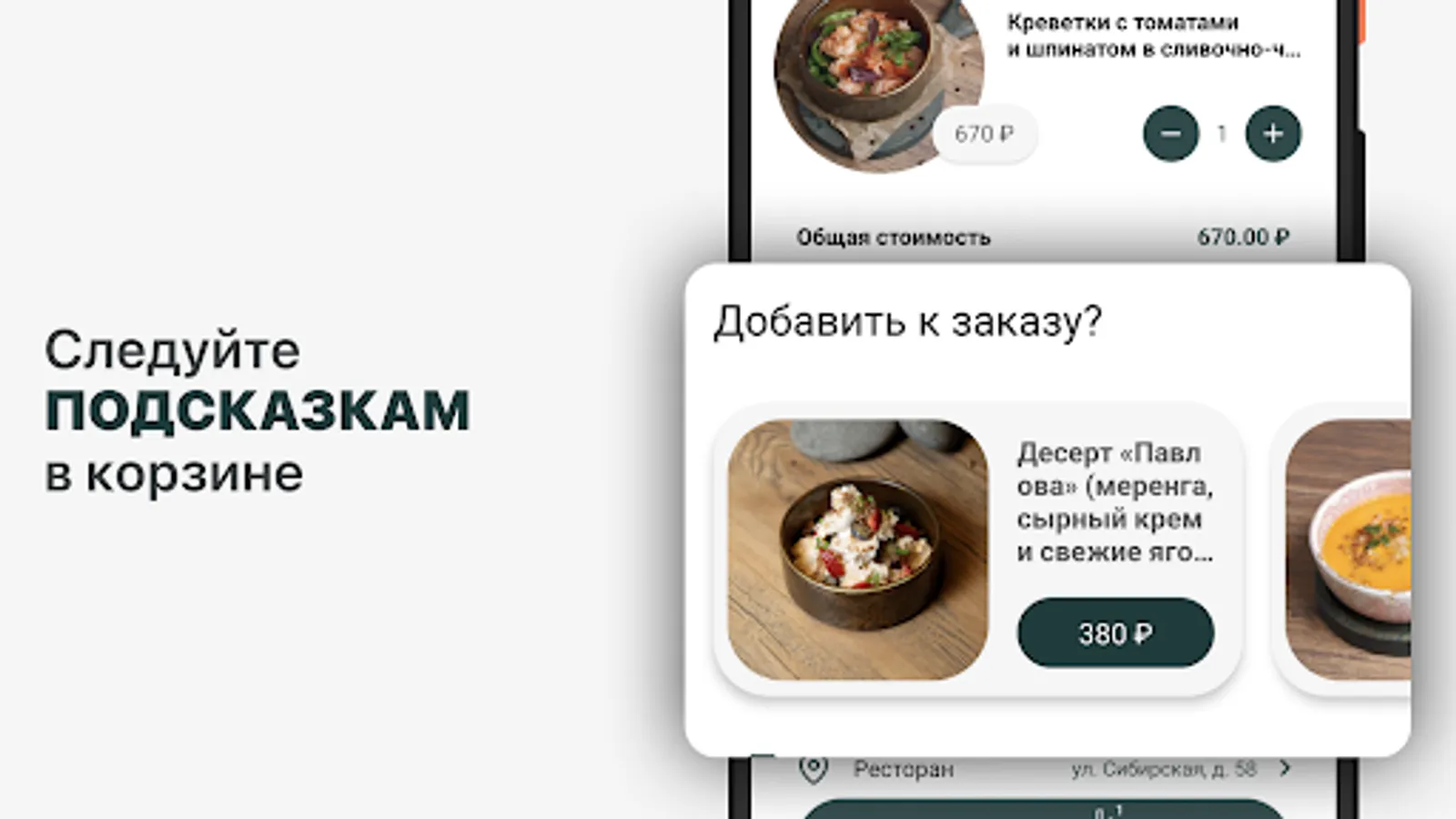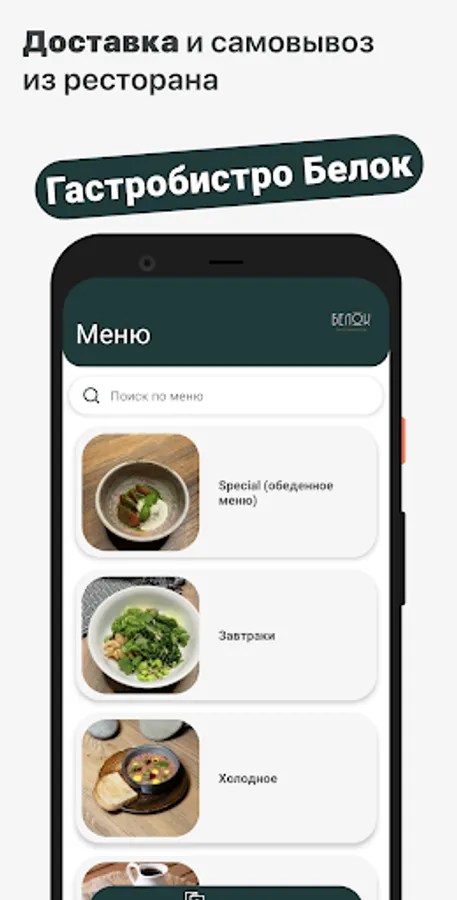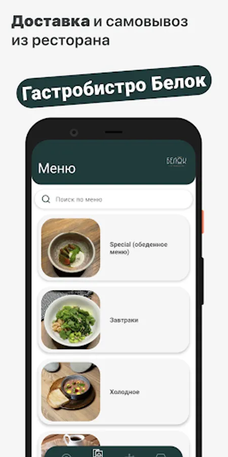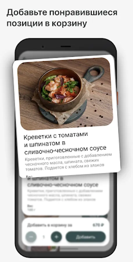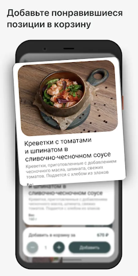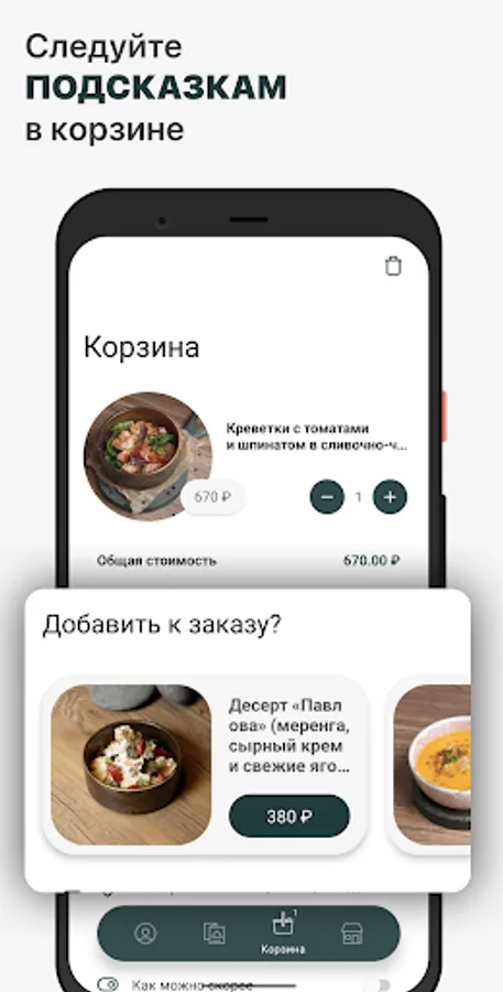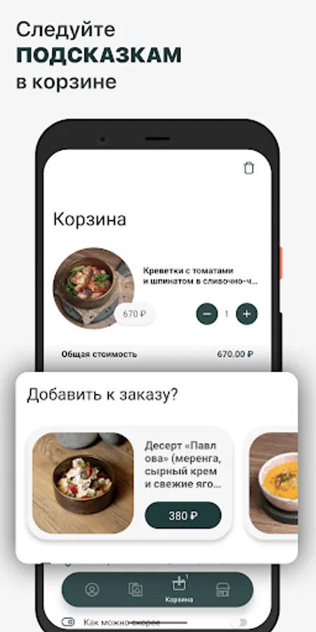 How to place an order in the “Protein” application: select the items you like from the menu, add them to the basket and go to the checkout screen (by clicking on the basket icon).