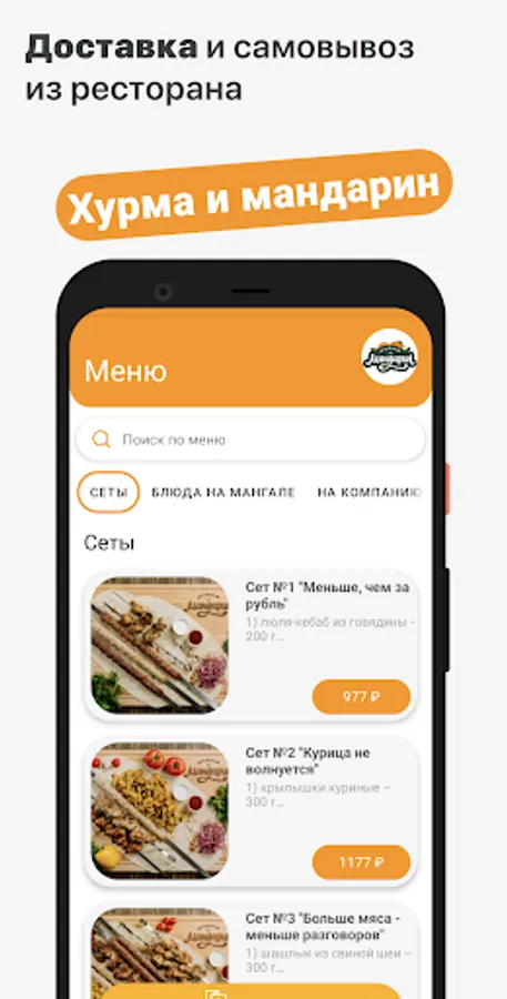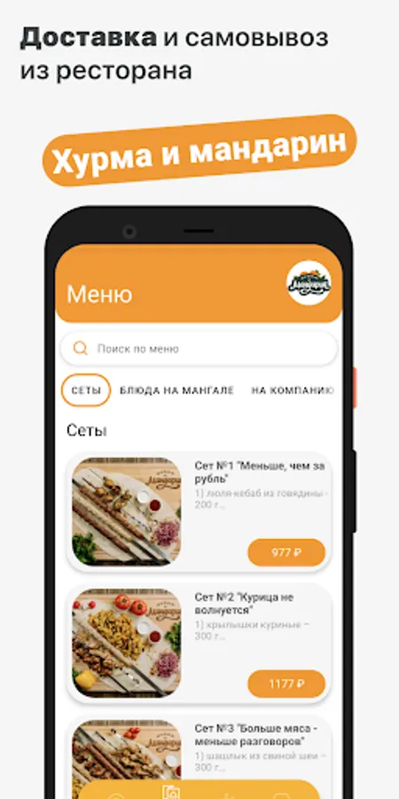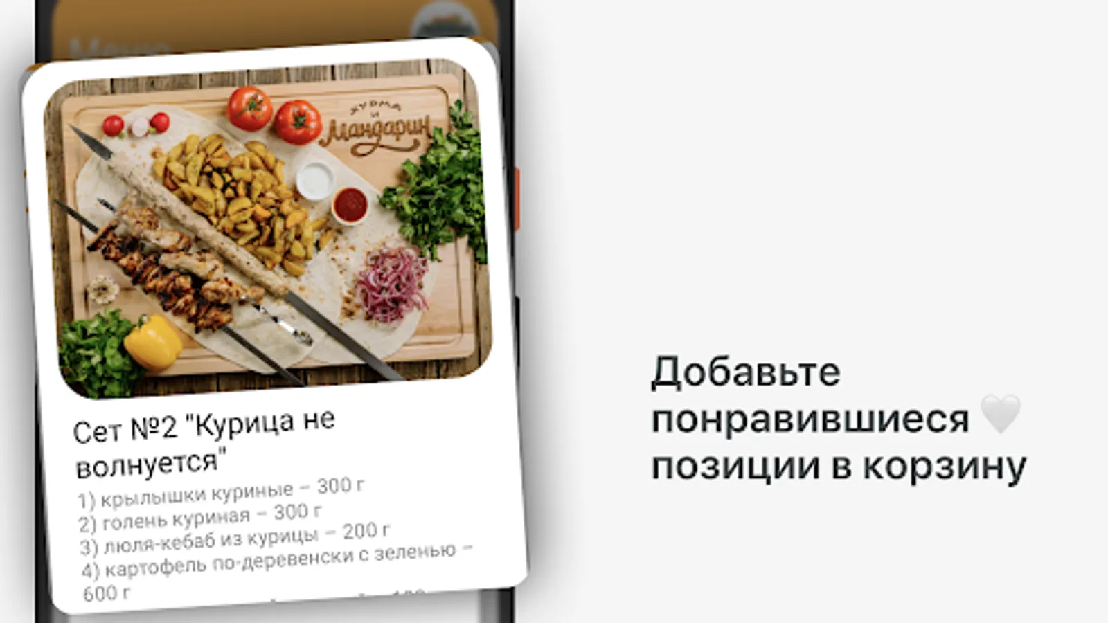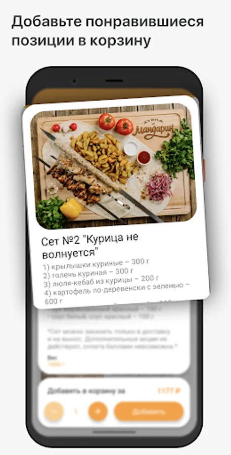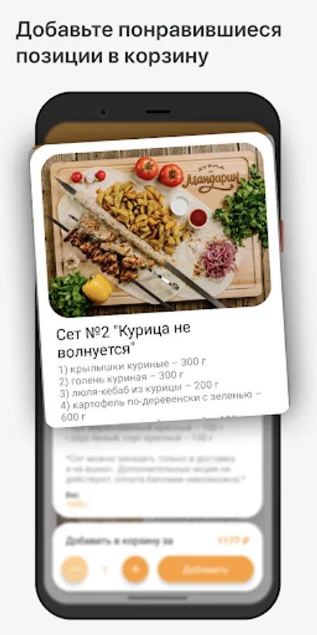 How to place an order in the "Persimmon and Tangerine" application: select the items you like from the menu, add them to the cart and go to the checkout screen (by clicking on the cart icon).