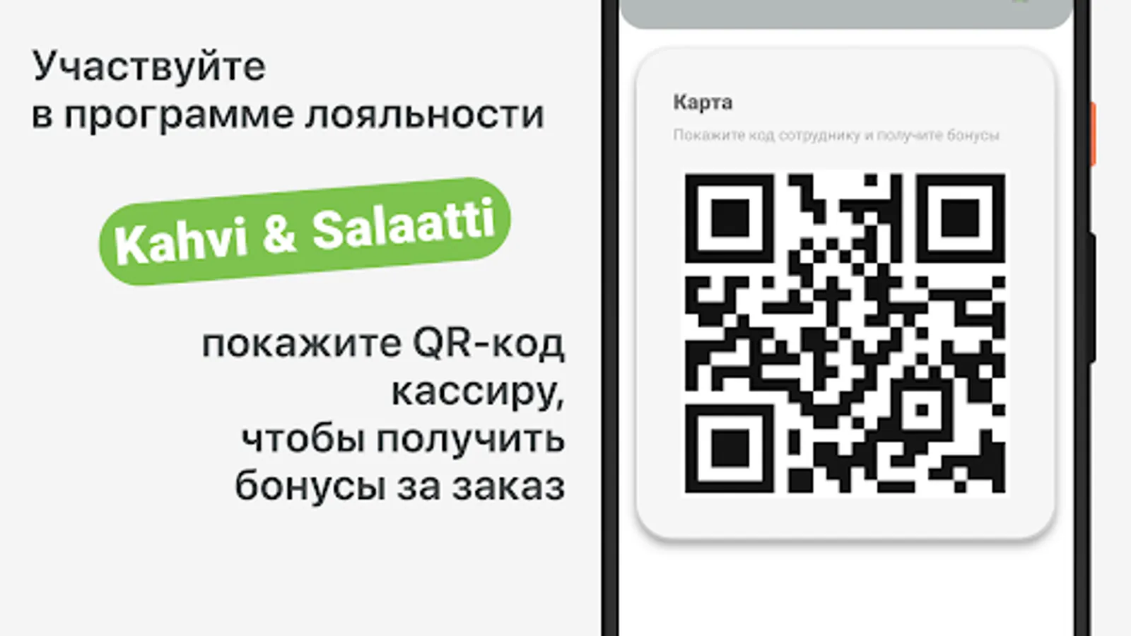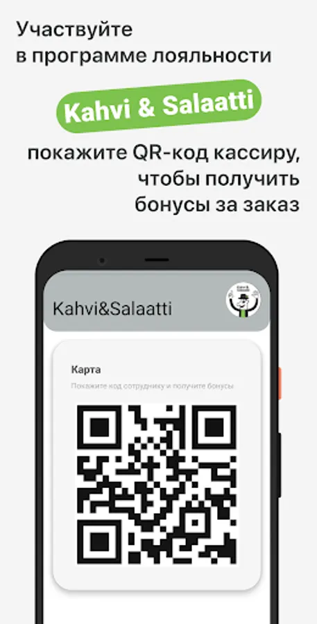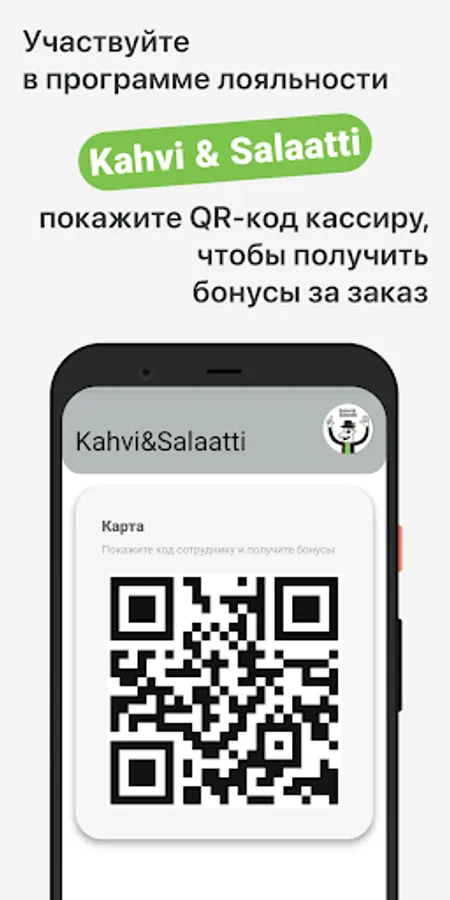 How to get bonuses for an order at “Kahvi & Salaatti”: log in to your profile by confirming your phone number with a code from SMS; before paying for the order in the institution, perform the action described on the "Check-in" screen