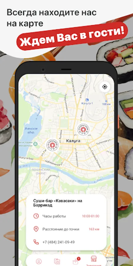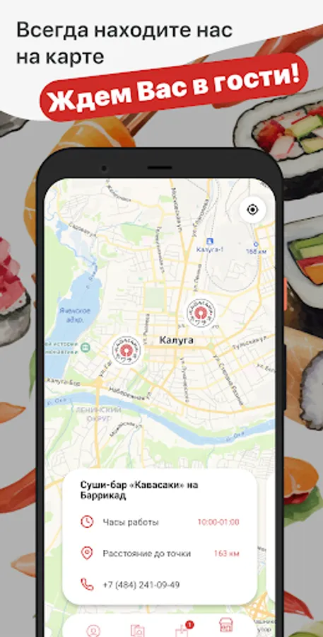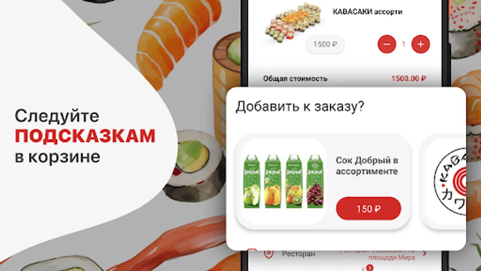 Mobile application Kawasaki restaurants will allow you to quickly and easily arrange delivery or pickup of Japanese and European cuisine in Kaluga.