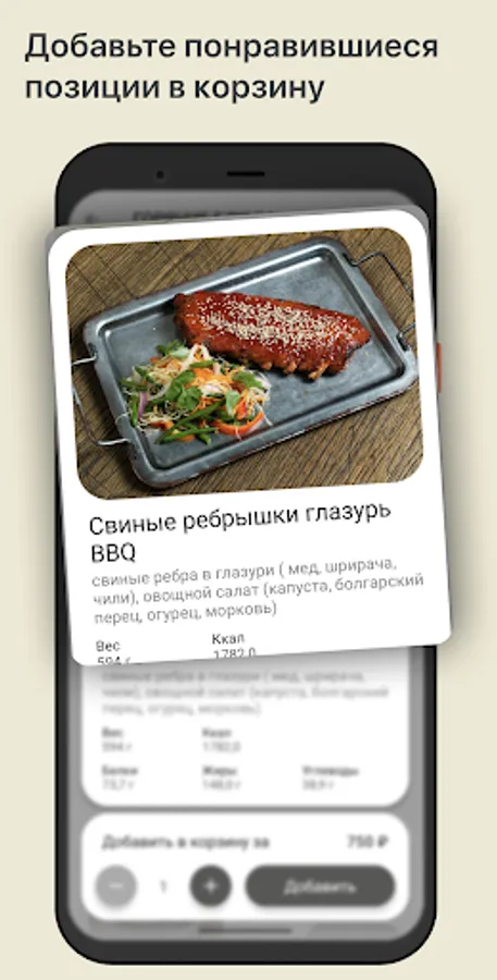 How to place an order in the “Gastrobar Box” application: select the items you like from the menu, add them to the cart and go to the checkout screen (by clicking on the cart icon).