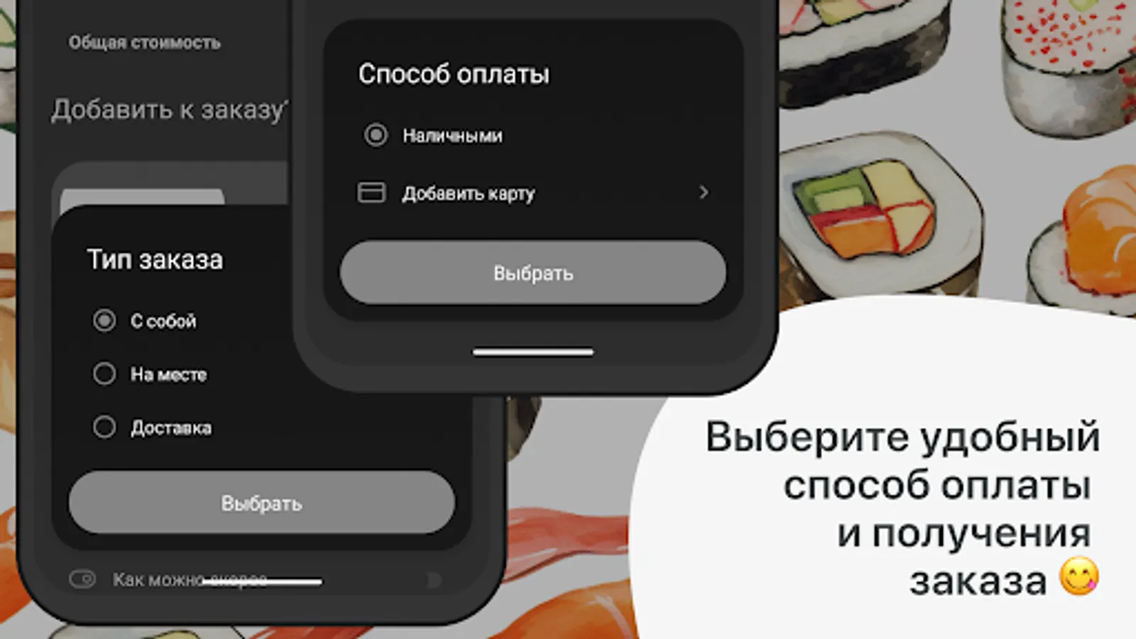 Choose a payment method: Cash or card. Accept the payment rules and click the “Order” button.
