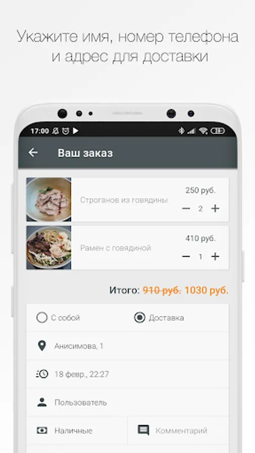 That's it, your order will go to the operator, and we will prepare it by the appointed time.