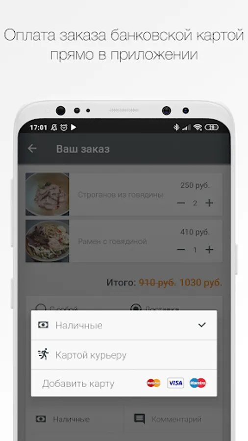 Choose a payment method: Cash or card. Accept the payment rules and click the “Order” button.