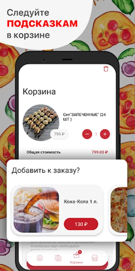 How to place an order in the "Pizza Olympus" application: select the items you like from the menu, add them to the cart and go to the checkout screen (by clicking on the cart icon).