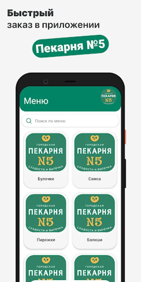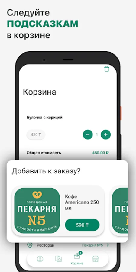 How to place an order in the “Bakery # 5” application: select the items you like from the menu, add them to the cart and go to the checkout screen (by clicking on the cart icon).