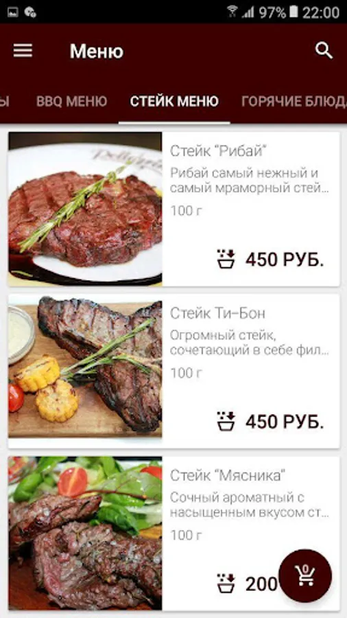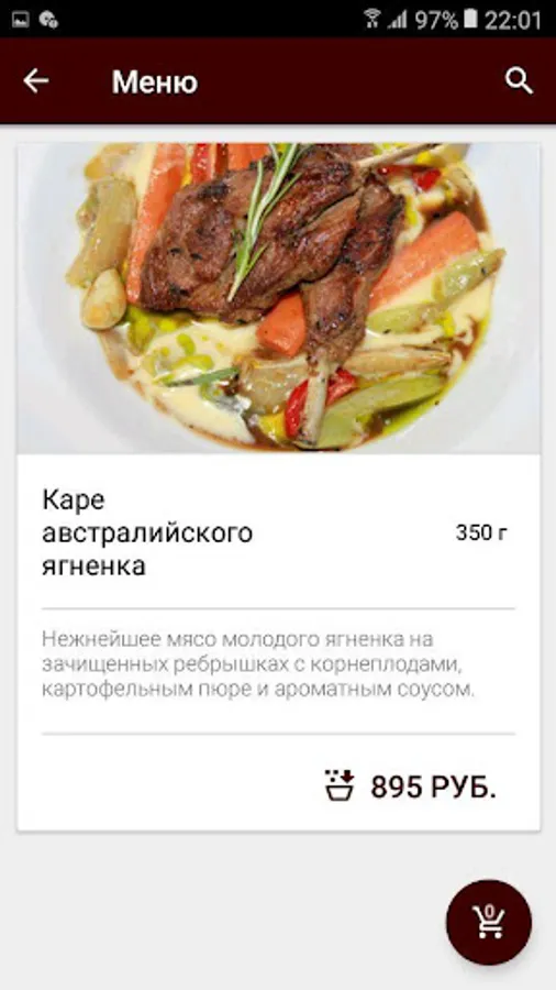 How to order in «Pellegrino» application: select your favorite items from the menu, add them to your cart and proceed to checkout screen (by pressing the trash icon).