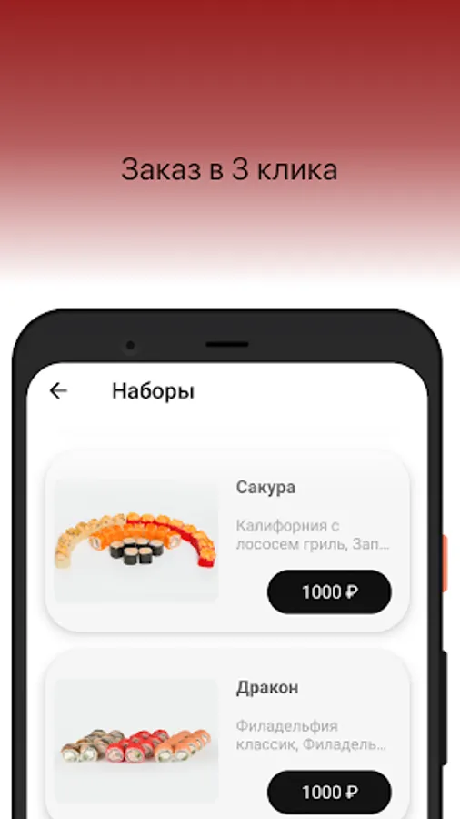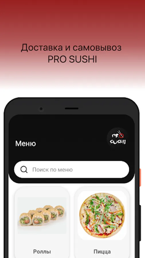 How to place an order in the “PRO SUSHI” application: select the items you like from the menu, add them to the basket and go to the checkout screen (by clicking on the basket icon).