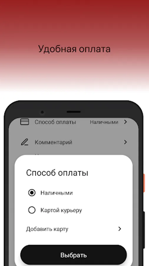 Choose a payment method: Cash or card. Accept the payment rules and click the “Order” button.