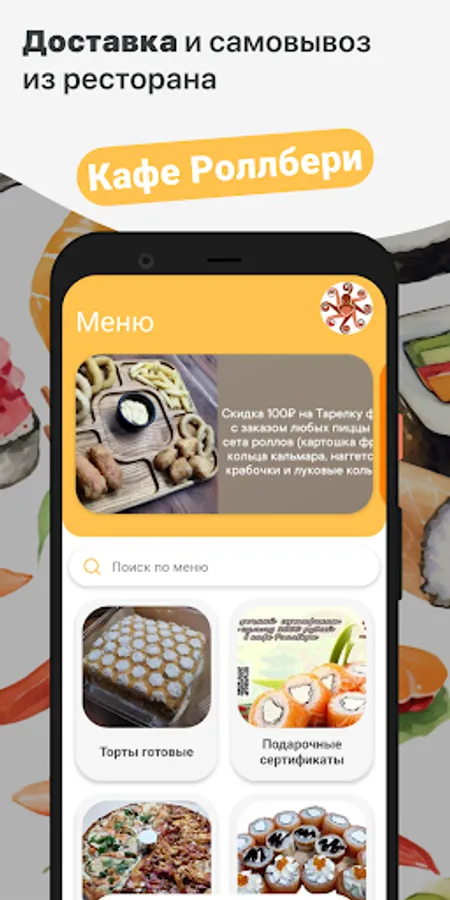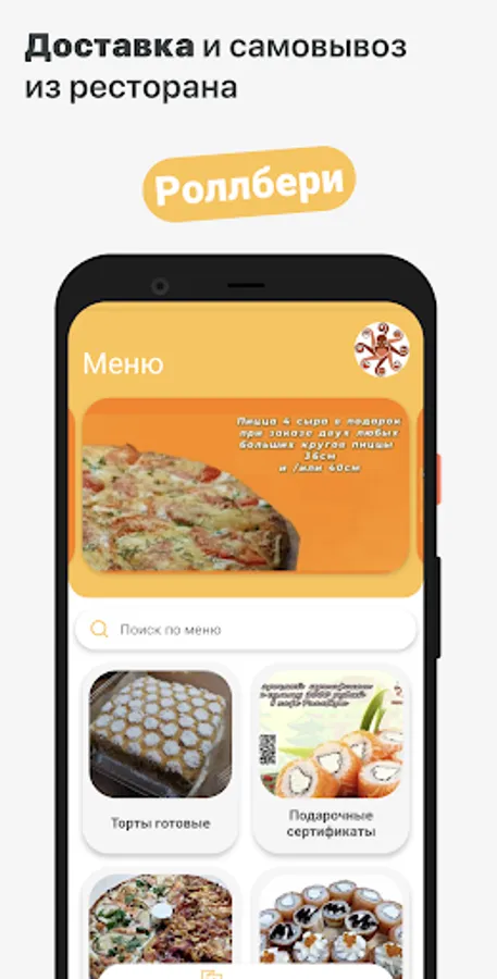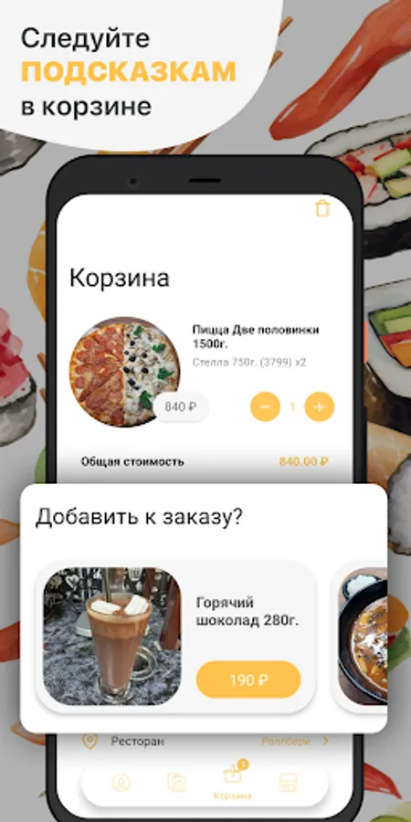 How to place an order in the Rollbury application: select the items you like from the menu, add them to the basket and go to the checkout screen (by clicking on the basket icon).