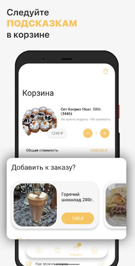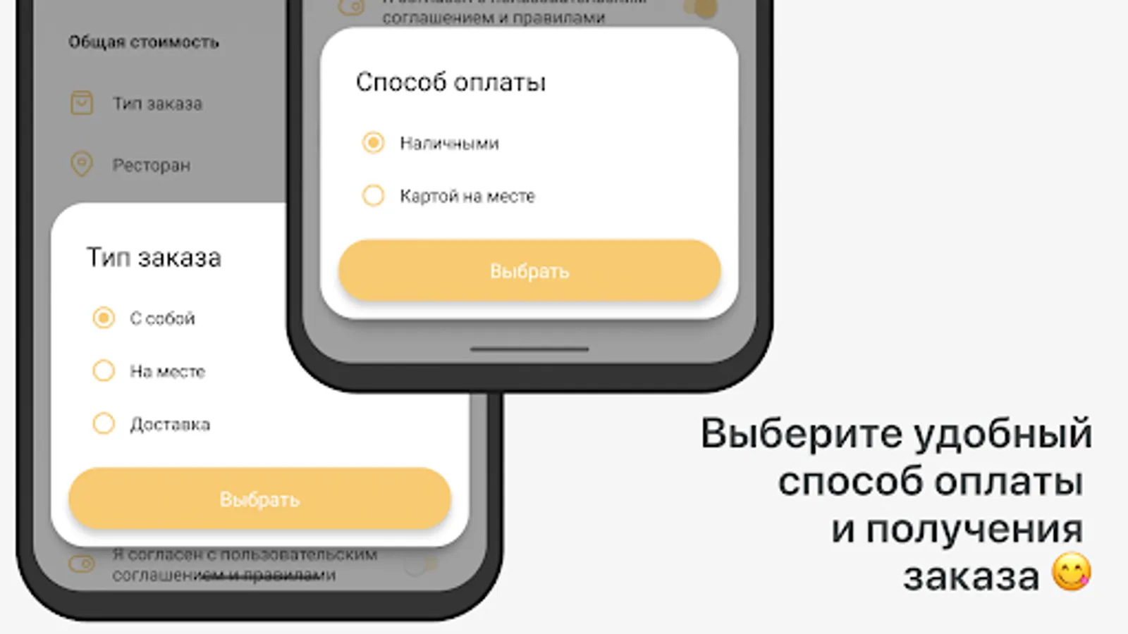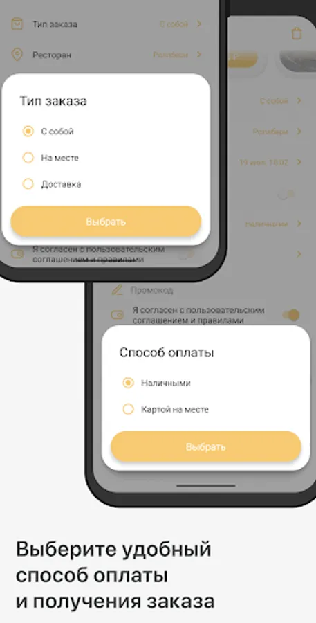 Specify the time when you want to pick up your order or select delivery with the time and address of delivery.