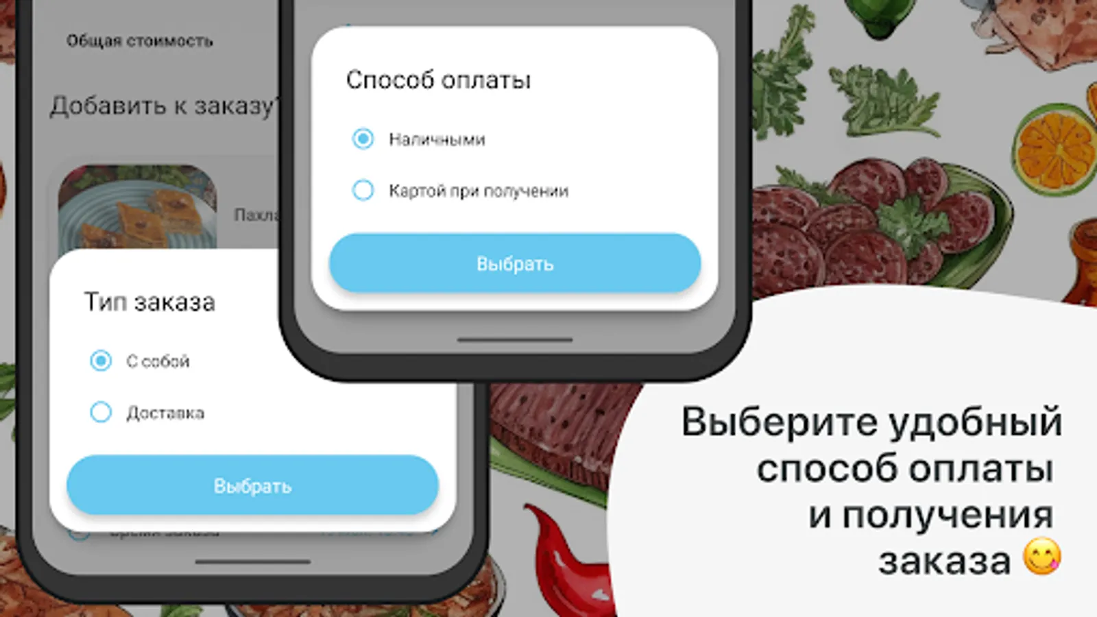 Choose a payment method: Cash or card. Accept the payment rules and click the “Order” button.