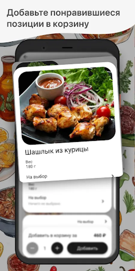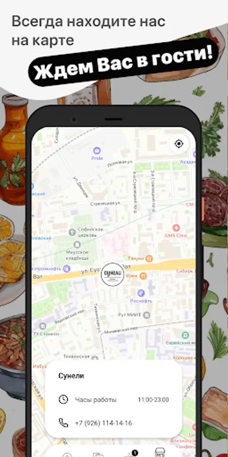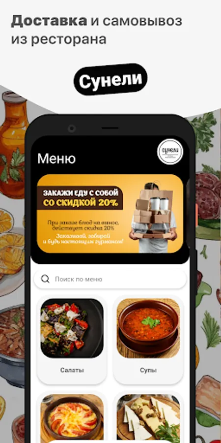 How to make an order in the application "Khinkalny House of Suneli": select the items you like from the menu, add them to the cart and go to the checkout screen (by clicking on the cart icon).