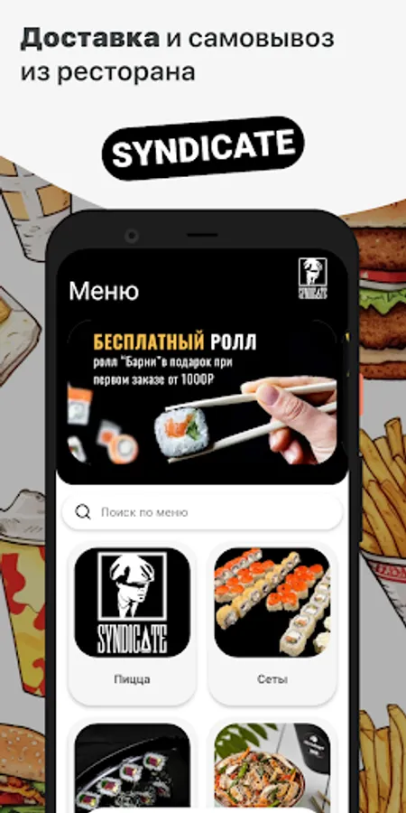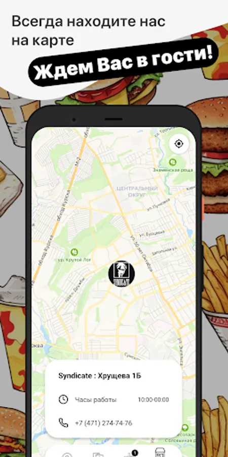 How to place an order in the Syndicate app: select the items you like from the menu, add them to the cart and go to the checkout screen (by clicking on the cart icon).