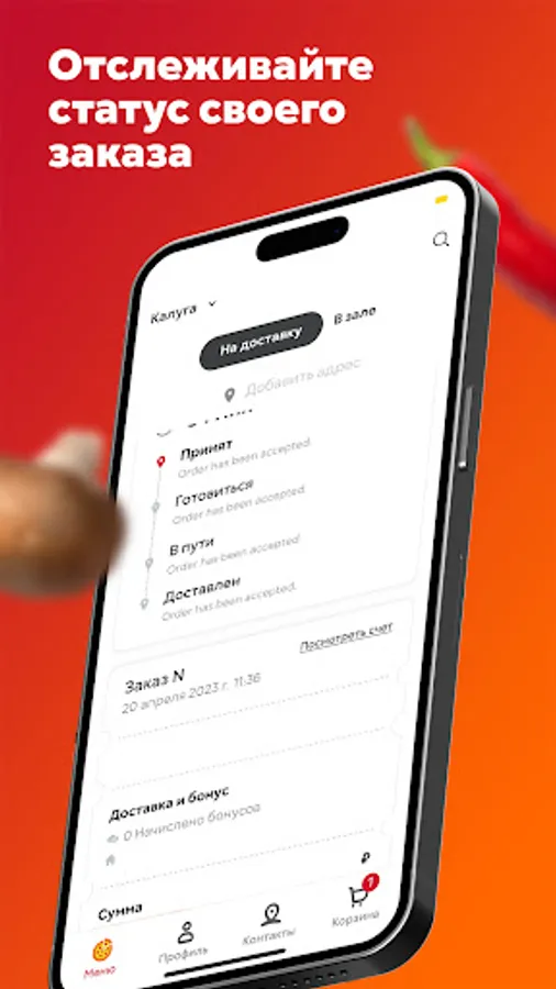 Our application offers a unique opportunity to trace the entire path of your order from the pizzeria to your door. We allow you to witness a real culinary marathon: from the moment your order is prepared, when your pizza is just beginning to take on its unique shape and taste, and ending with the moment when the courier knocks on your door.
