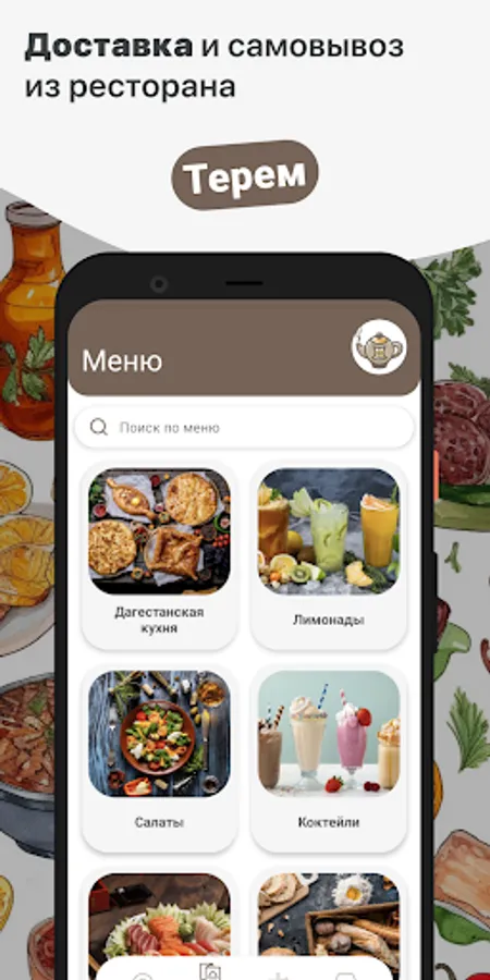 Cafe "Teremok" in Kayakent - Charcoal steaks, burgers, salads, rolls, flour products, cocktails, a very large selection of teas and desserts. All with home delivery.
