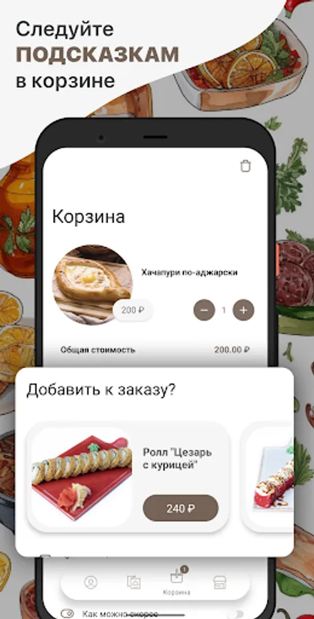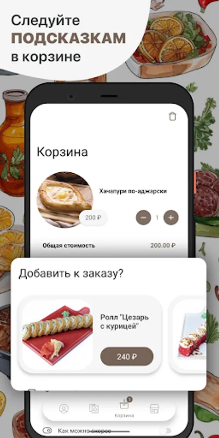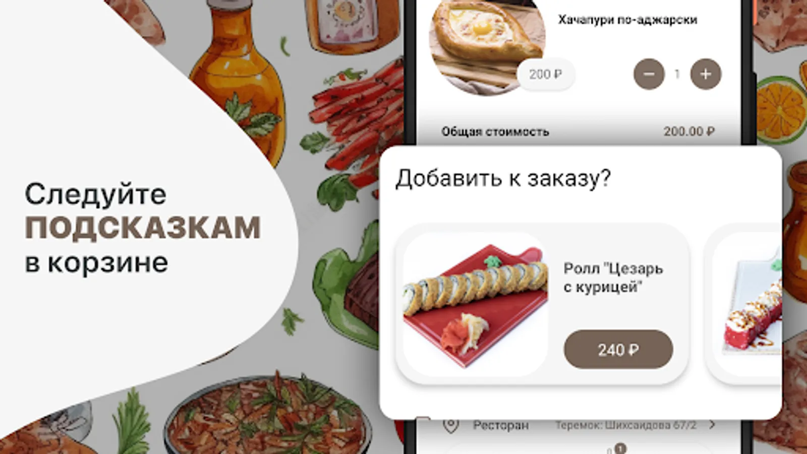 How to place an order in the Teremok application: select the items you like from the menu, add them to the cart and go to the checkout screen (by clicking on the cart icon).