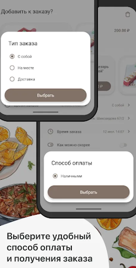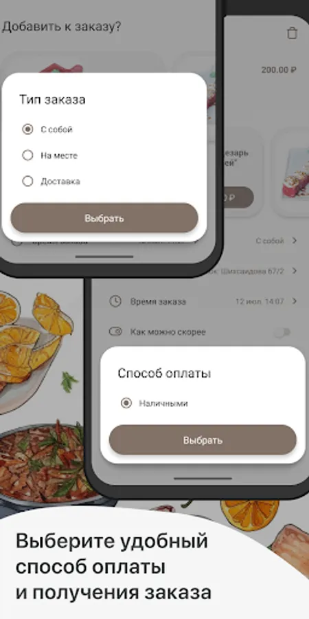 Specify the time when you want to come to pick up your order or select delivery with the time and delivery address.