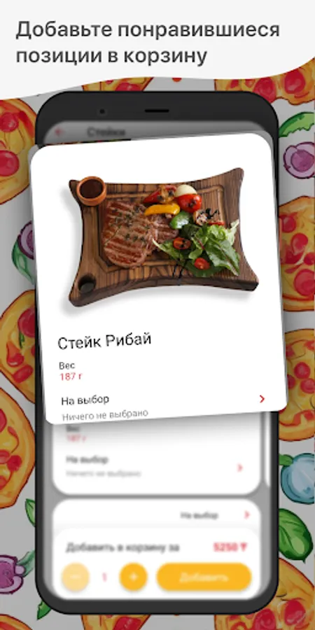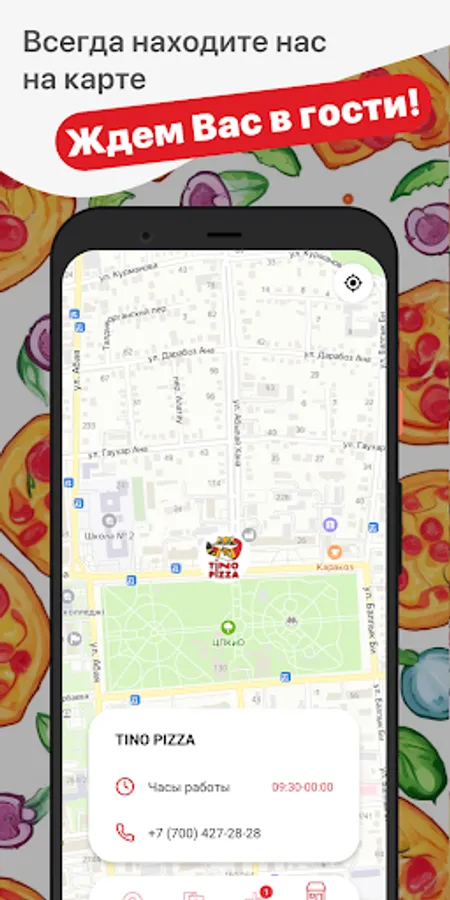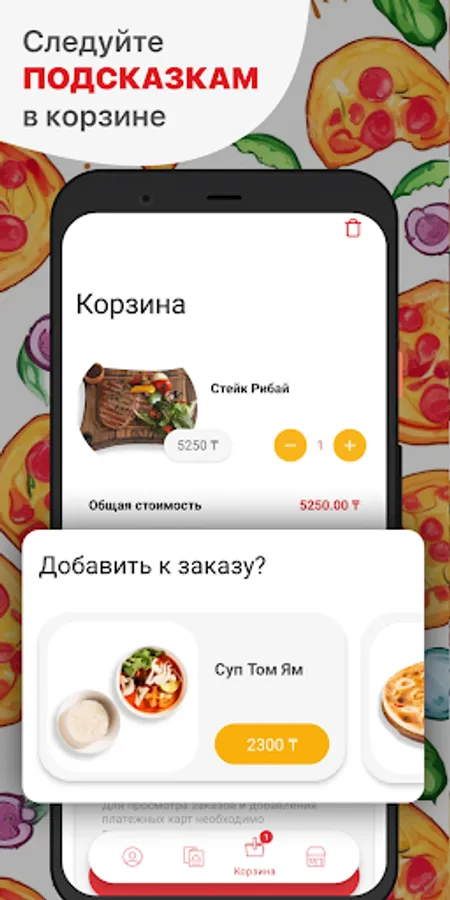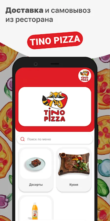 How to place an order in the “TINO PIZZA” application: select the items you like from the menu, add them to the basket and go to the checkout screen (by clicking on the basket icon).