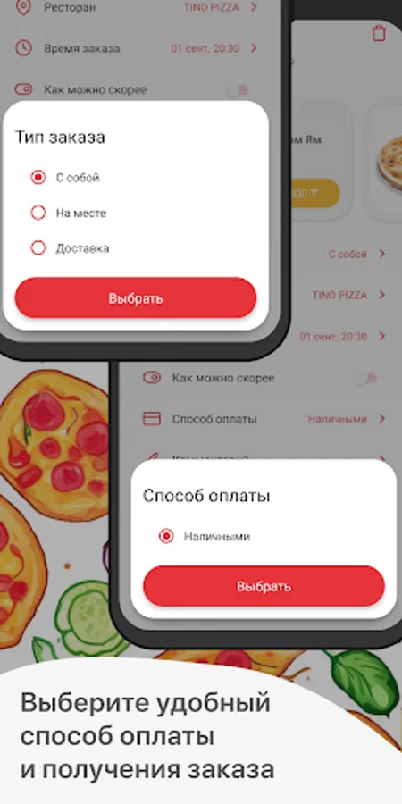 Specify the time when you want to pick up your order or select delivery with the time and address of delivery.