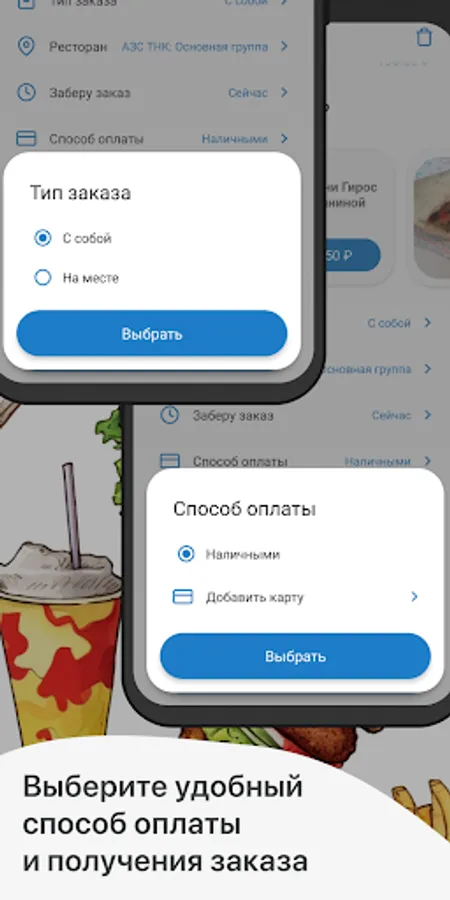 Specify the time when you want to come for your order. Take payment and click "Order" button.
