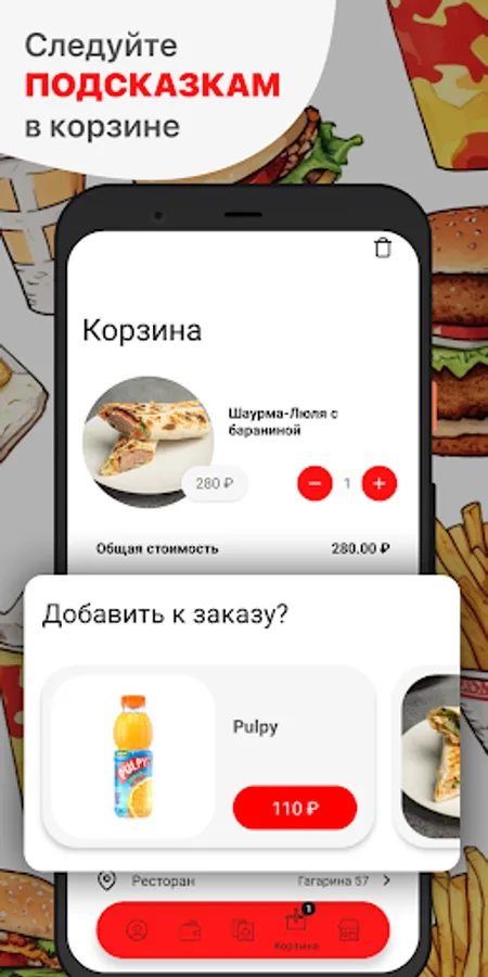 How to place an order in the Arthur's app: select the items you like from the menu, add them to the cart and go to the checkout screen (by clicking on the cart icon).