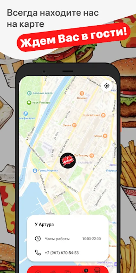 Our cafe is located in the very center of Sochi. Here you can eat delicious barbecue, Italian pizza and shawarma and, of course, drink coffee. We always try for our customers, we serve only fresh dishes that our chefs prepare from the heart and with love. We sincerely appreciate the smiles of our customers! Come visit us!