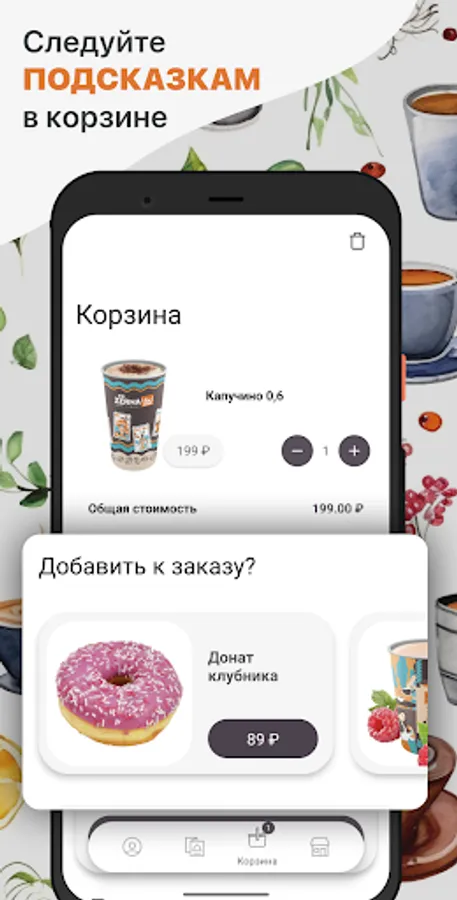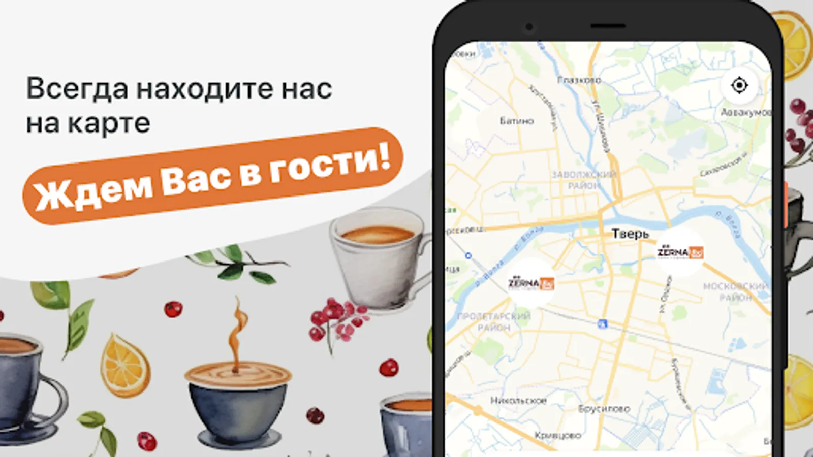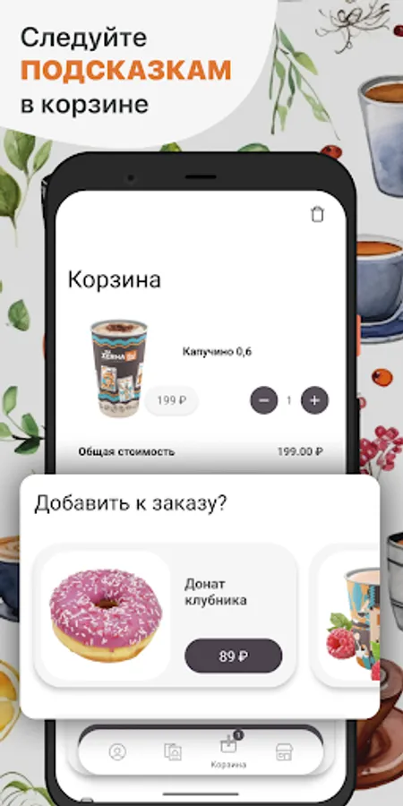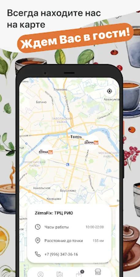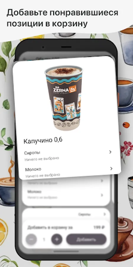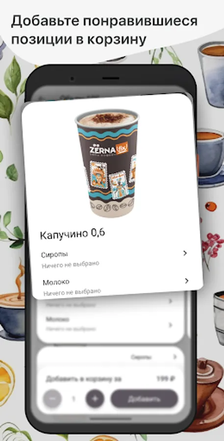 How to place an order in the “ZёrnaFix” application: select the items you like from the menu, add them to the basket and proceed to the checkout screen (by clicking on the basket icon).