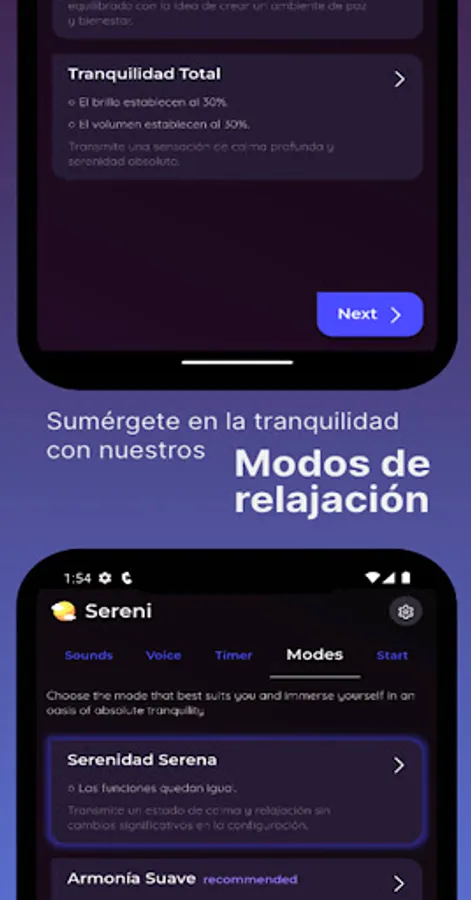 Sereni, the definitive application for your restful sleep. With calming sounds and guided meditations, Sereni helps you fall asleep quickly, overcoming insomnia and stress. Its light therapy synchronizes your circadian rhythm, improving the quality of sleep and your daily well-being. Establish routines with sleep scheduling and record your nightly experiences for clear patterns. Wake up gently with the smart alarm, simulating the light of dawn. Sereni attacks sleep problems holistically, providing a calm and revitalizing experience. Don't let sleep problems affect your life, download Sereni and discover the magic of a deep and revitalizing sleep that drives you to live to the fullest every day.