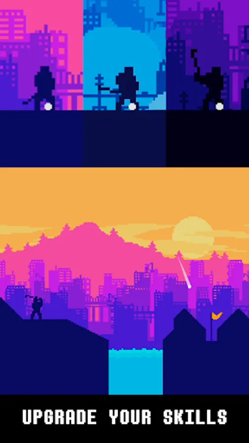 - 8-bit retro pixel art aesthetic.
