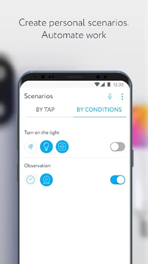 Save time by customizing series of actions, such as turning on the lights when you enter the room, or heating the bathroom floor 30 minutes before your arrival.