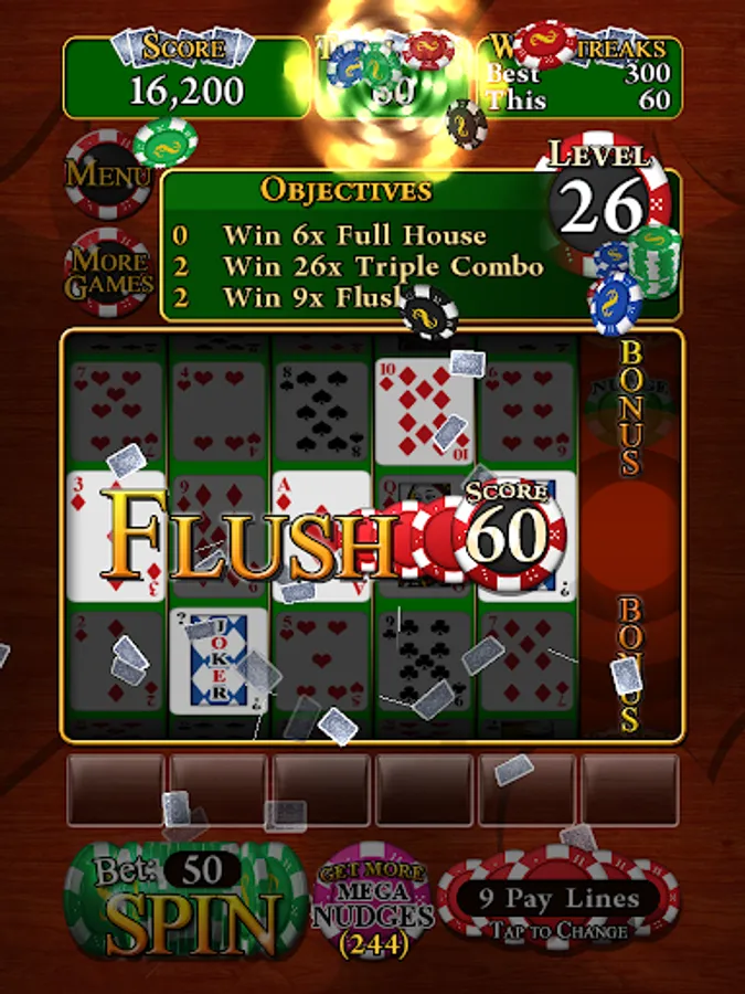We don't want to spoil all the surprises here. Poker Slots Deluxe is bristling with features, and the best way to experience them is to download the game and see for yourself. You won't be disappointed.