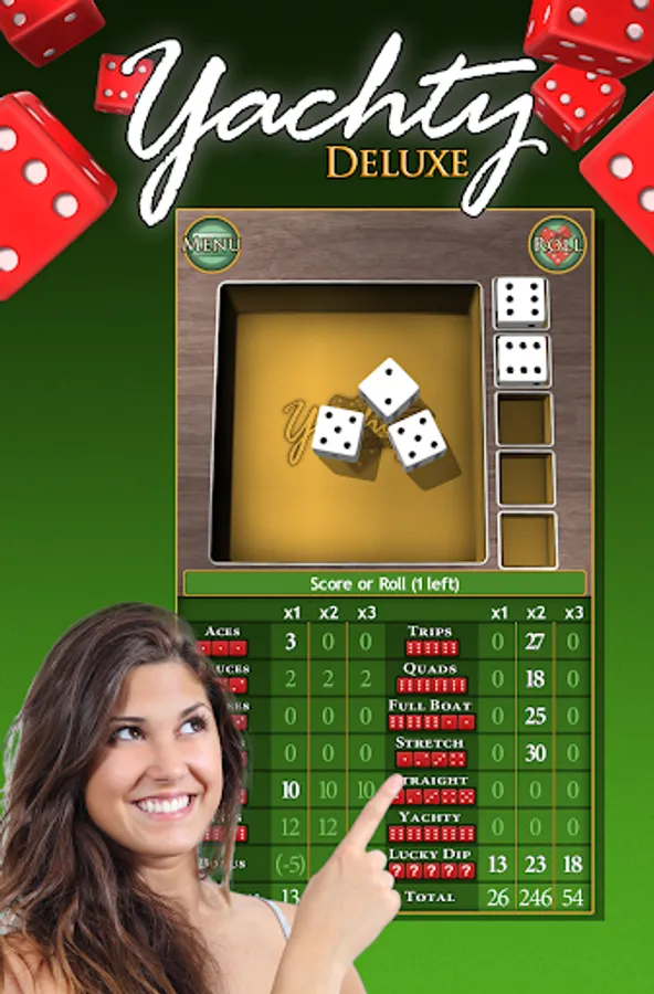 The dice are rendered in full 3D and shaken using an advanced physics simulation. This brings an unprecedented level of realism to Android dice gaming.