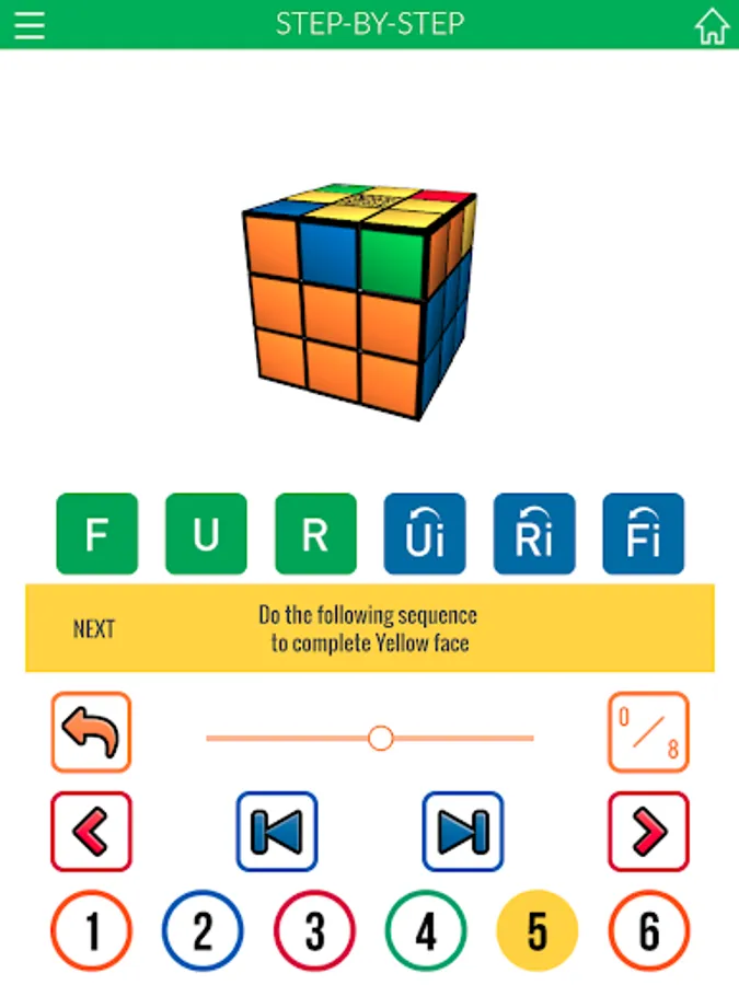 This step-by-step solution mode is the first and only application that guides you through each step of the solution by showing the movements to be performed using a virtual cube identical to the one you hold in your hand.