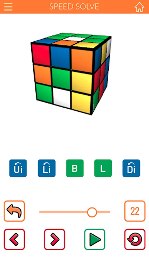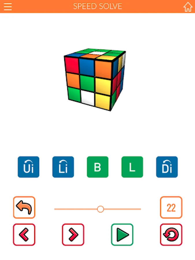 Movement speed of the virtual cube is adjustable. Cube rotations made can be viewed individually or in sequences.