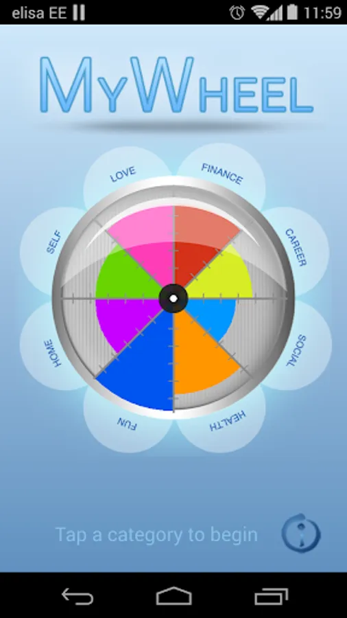 MyWheel is a self-development App that was produced by the Rubik's Solutions team during the Garage48 EMT Appmillionaire Camp 2013, Tallinn. It is an App that helps you make right decisions in life and shows your life balance in a form of a wheel. Every sector of the wheel represents one aspect of your life that indicates what to improve to live life fully! MyWheel App is inspired by a popular concept of "Wheel of Life" and created with the help of psychologists and professionals in the field.
