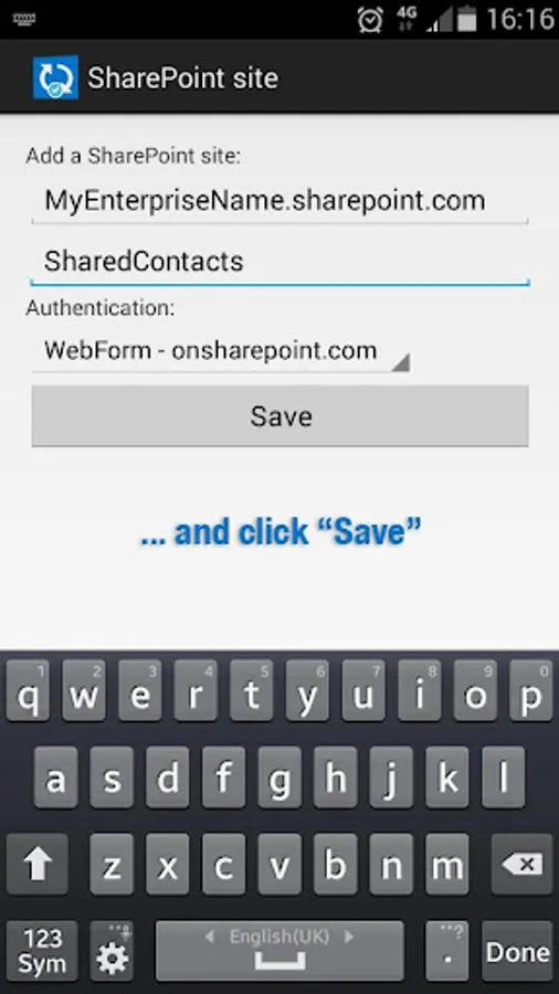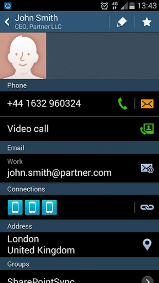 • Save and connect to multiple SharePoint sites and contact lists;
