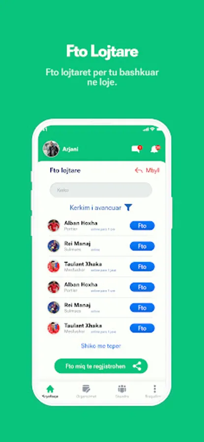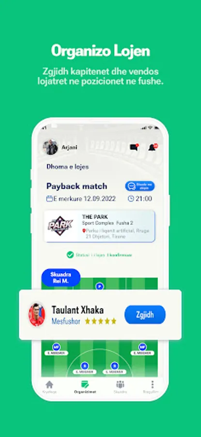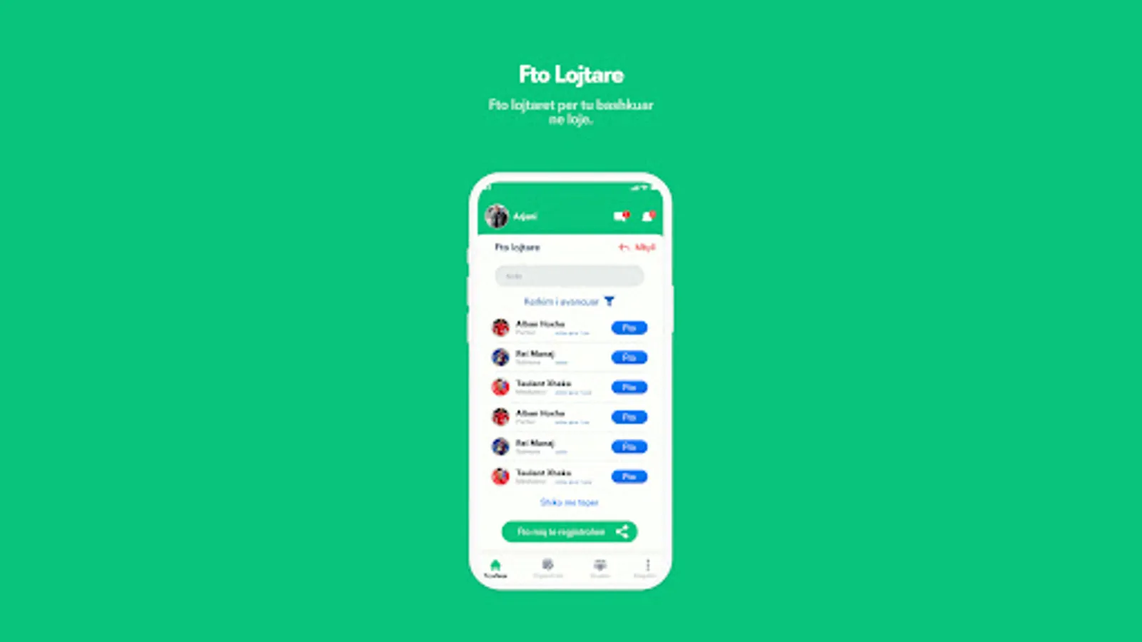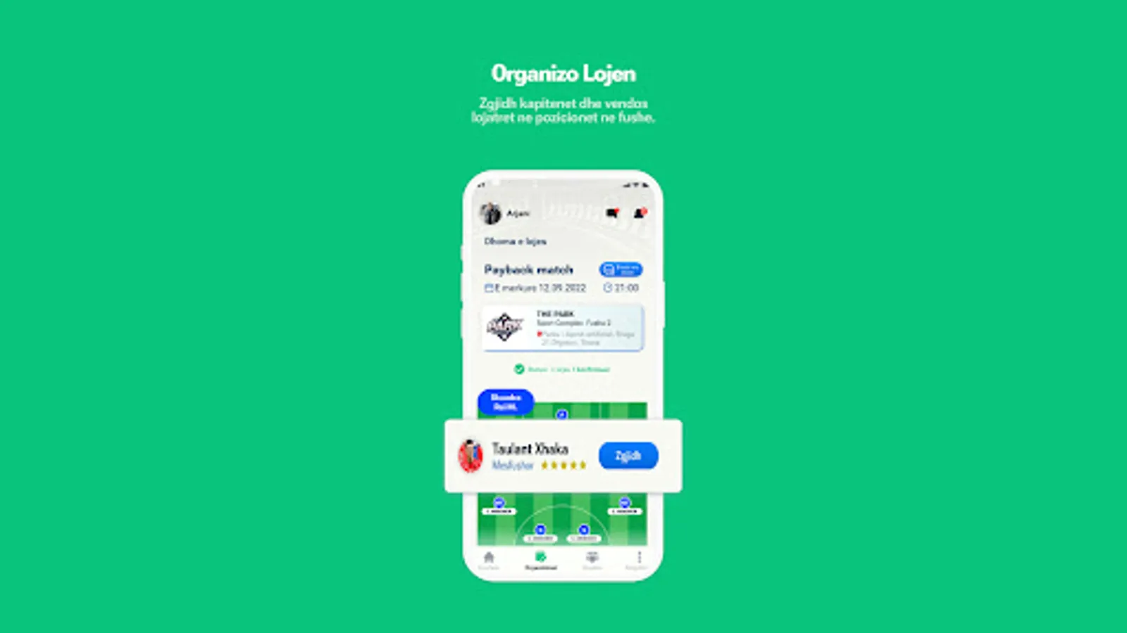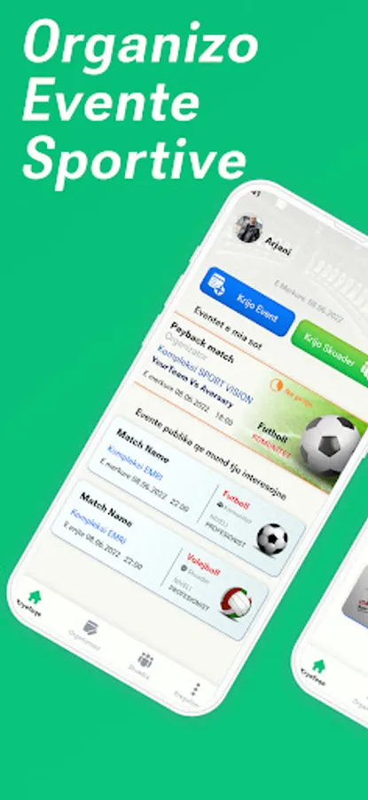 Sportisti ju ndihmon qe te rezervoni hapesiren tuaj ne komplekse dhe fusha te ndryshme sportive. Organizoni evente, krijoni skuadra, ftoni miq apo kerkoni lojtare qe te bashkohen ne evente publike ose behu pjese e tyre.