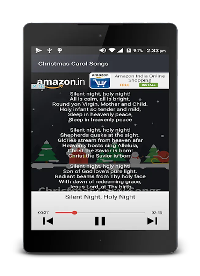 This app consists of several Christmas carols and it lyrics. Merry Christmas :)